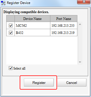 Select a printer, and then click [Register].
