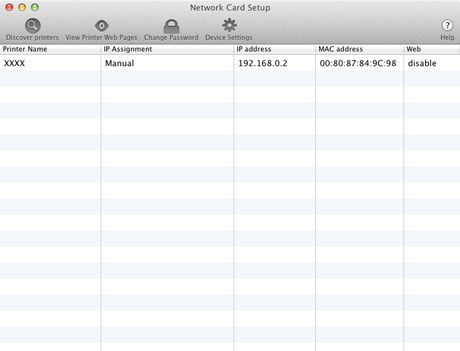 This section describes how to search for a printer on a network by using Network Card Setup.
