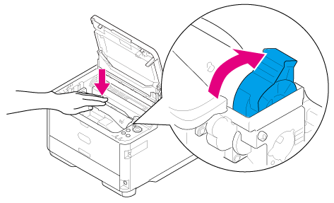 on the toner cartridge until the knob stops rotating while holding the top surface of the toner cartridge with your hand so that the cartridge does not rise.