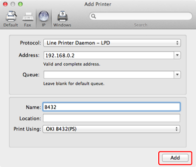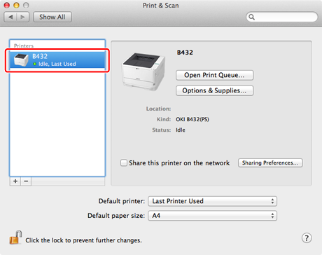 The name of the printer is displayed in "OKI-B432 (the last six digits of the MAC address)" format.
