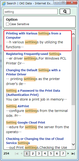 10 search results are displayed on 1 page. To change the page to display other 10 search results, click the page number.