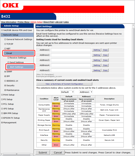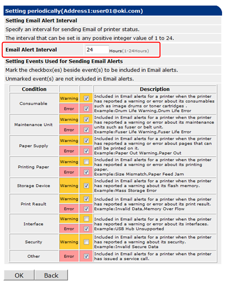 If you want to apply the notification conditions to another address, click [Copy]. This is useful when you want to set the similar failure conditions to multiple destinations.