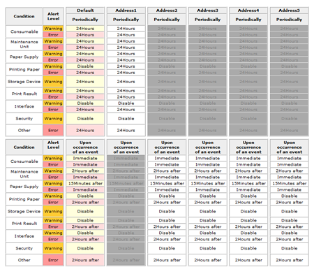 You can change a notification condition setting by clicking it in the condition setting table.
