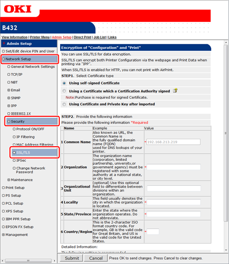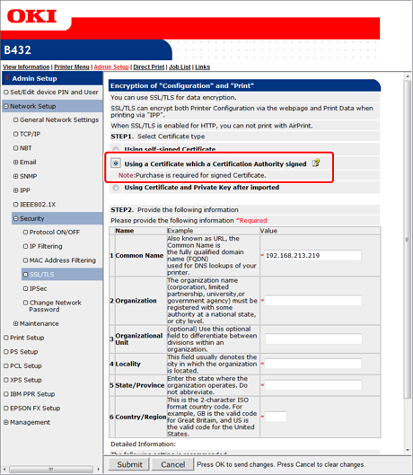 For details on issuing an entry certificate, follow the procedure provided by the certificate authority if [Using a Certificate which a Certification Authority signed] is selected.