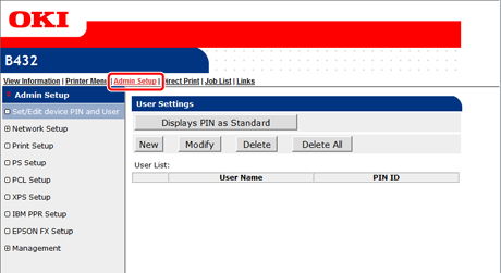 You can create a certificate on the Web page. The following certificates can be created.