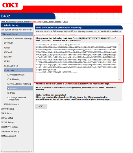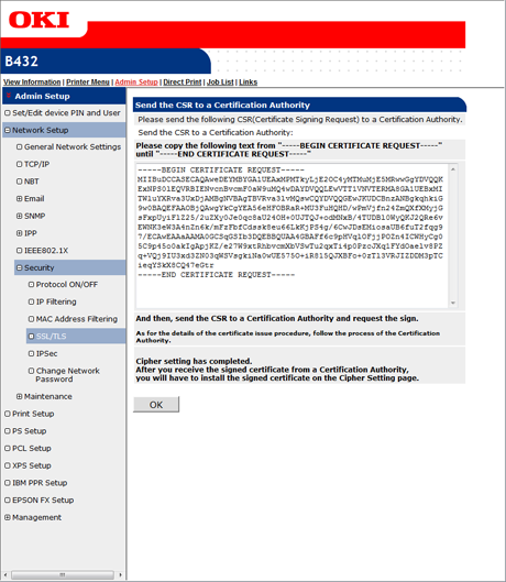 If you change the IP address of the printer after creating the certificate, the certificate becomes invalid. Be sure not to change the IP address of the printer after creating the certificate.