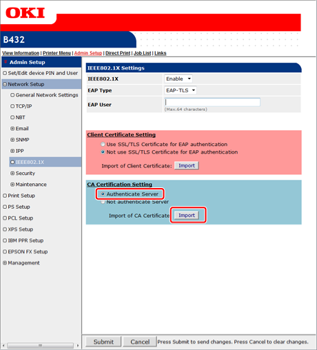 Specify the certificate that is issued by the certificate authority and the RADIUS server obtains. You can import a PEM, DER, or PKCS#7 file.