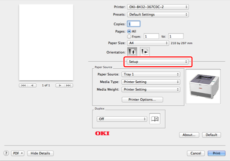 Select [Tray 1] for [Paper Source] and [Printer Setting] for [Media Weight].