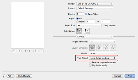 Duplex printing is available for the following paper sizes.