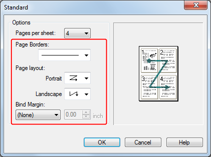 [Draw Borders] and [Pages per Sheet] are not available with Windows Server 2003.