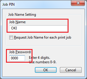If you select the [Request Job Name for each print job] check box, a screen is displayed to ask the job name when sending the print job to the printer.