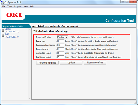 The Alert Info plug-in settings can be changed for each device.