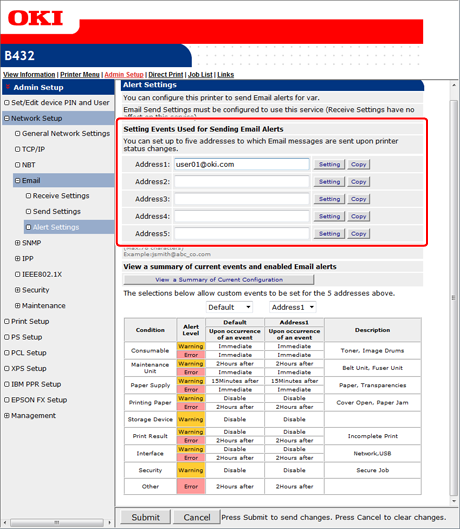 If you want to apply the notification conditions to another address, click [Copy]. This is useful when you want to set the similar failure conditions to multiple destinations.