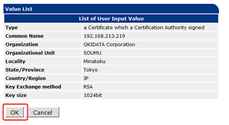 For details on issuing an entry certificate, follow the procedure provided by the certificate authority if [Using a Certificate which a Certification Authority signed] is selected.