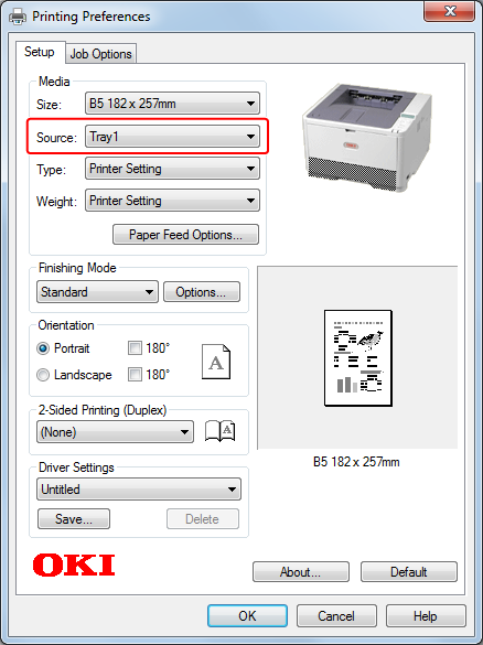 Select [Tray 1] for [Source] on the [Setup] tab.