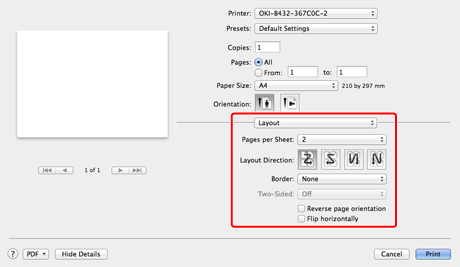 Select [Draw Borders] if necessary. Page layout can also be changed via [Advanced] > [Pages per Sheet Layout].