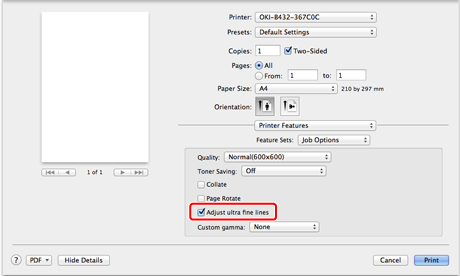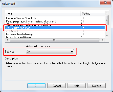 Select the [Adjust ultra fine lines] check box, and then click [OK].