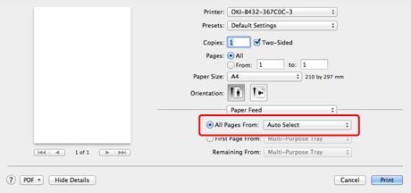 You can automatically select a tray (paper cassette (Tray 1 or Tray 2)) or MP tray that holds paper of the same size that is set with the printer driver.