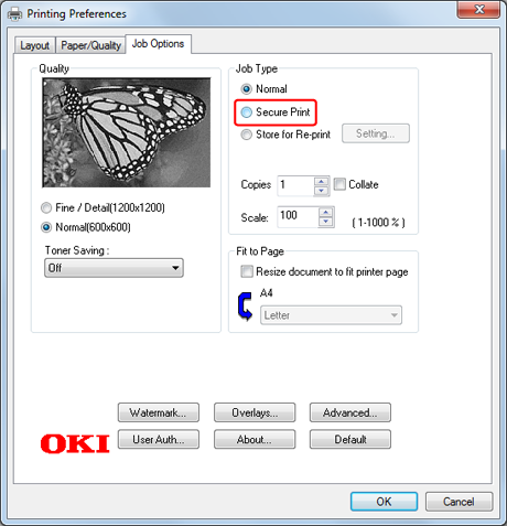 If you select the [Request Job Name for each print job] check box, a screen is displayed to ask the job name when sending the print job to the printer.