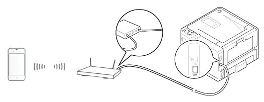 If using a router or hub as an access point on a wired LAN, connect the printer to the router or hub with a LAN cable.