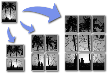 The function works by dividing a poster into several parts, and printing the enlarged portions on multiple sheets of paper. By gluing the separately printed sheets together, you can create a rather large poster.