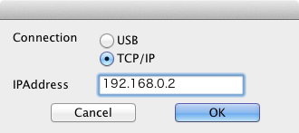 Select [USB] or [TCP/IP]. If you select TCP/IP connection, enter the printer's IP address that you checked on the menu map.