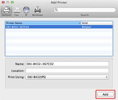 The name of the printer is displayed in "OKI-B432 (the last six digits of the MAC address)" format.
