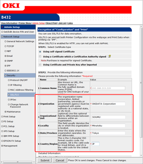 If you change the IP address of the printer after creating the certificate, the certificate becomes invalid. Be sure not to change the IP address of the printer after creating the certificate.