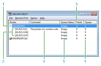 Indicates the status of OKI LPR Utility printer (this is different from the actual status of the printer). |