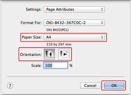 Select [A4] for [Paper Size], and the appropriate orientation for [Orientation], and then click [OK].