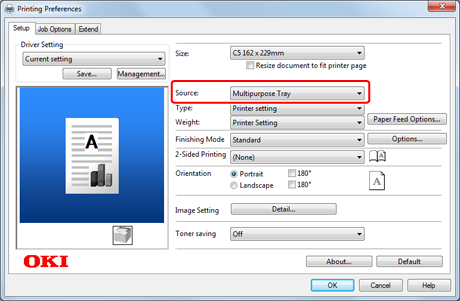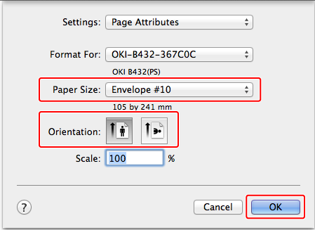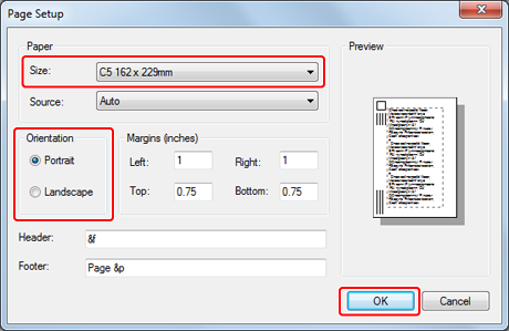 To print on envelopes in landscape orientation (printing on horizontal envelopes with the flaps on the right side), select the landscape orientation icon for [Orientation] on the [Page Setup] screen.