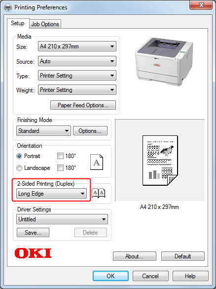 Duplex printing is available for the following paper sizes.