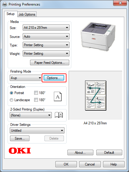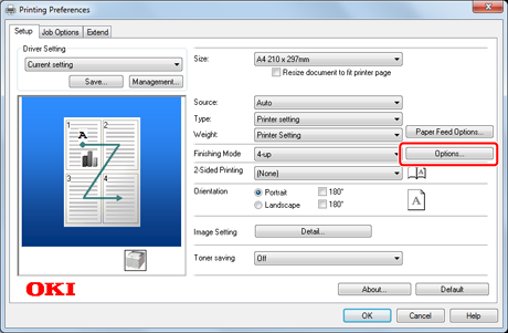 Select [Draw Borders] if necessary. Page layout can also be changed via [Advanced] > [Pages per Sheet Layout].
