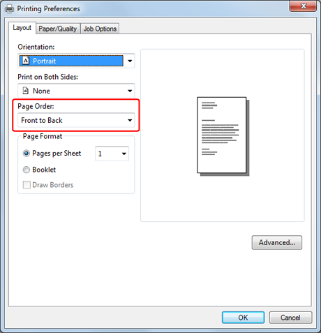 Select [Front to Back] or [Back to Front] from [Page Order] on the [Layout] tab.
