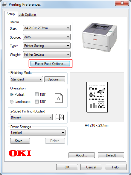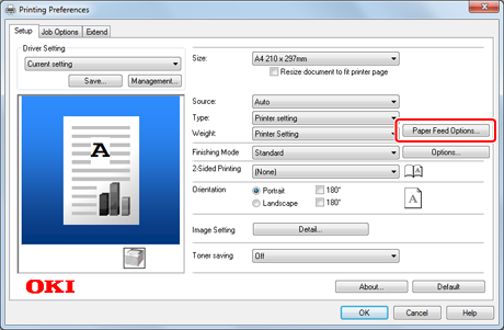 Click [Paper Feed Options] in [Media] on the [Setup] tab.