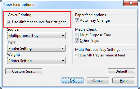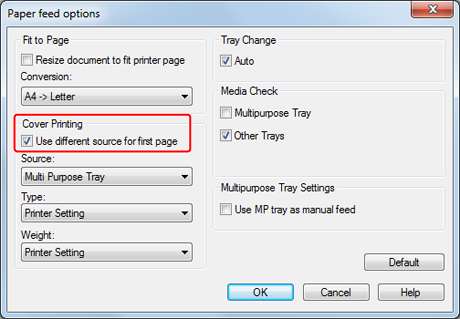 Select [First Page From], and then select a tray to feed the first page and a tray to feed the remaining pages.