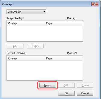 Select the [Print Using Active Overlays] check box on the [Overlays] screen, and then click [Define Overlays].