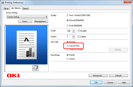 If you select the [Request Job Name for each print job] check box, a screen is displayed to ask the job name when sending the print job to the printer.