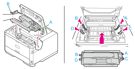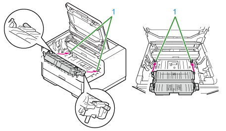Use extra care when handling the image drum (the green cylinder), because it is fragile.